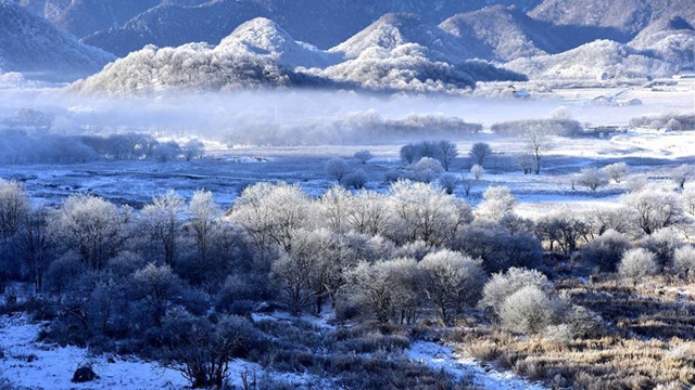 湖北省神農架の大九湖 美しい冬景色