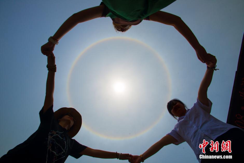 重慶市キ江区に日暈が出現 市民が写真撮影
