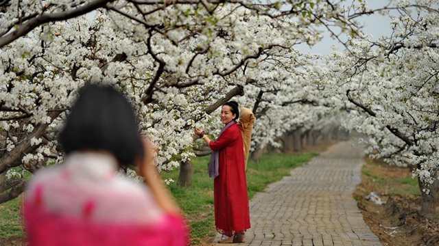 河北省滄州市でこのほど、42万1000ムー(約2万8000ヘクタール)にわたり梨の花が咲き、北京市や天津市、周辺地区から多くの観光客が観賞に訪れた。また、農家は梨の花への受粉や除草作業を行っている。