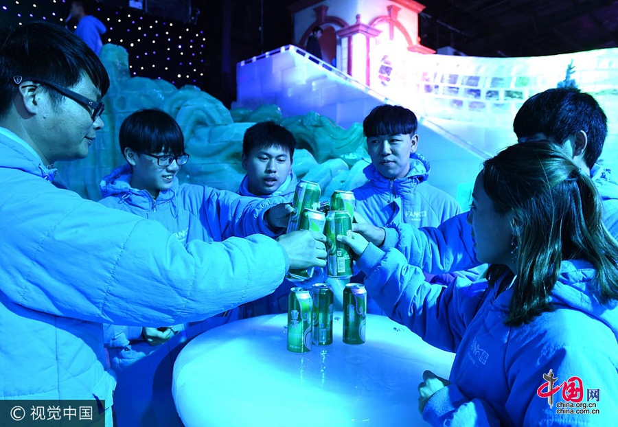 重慶市に「氷のバー」が登場 室外との温度差40度