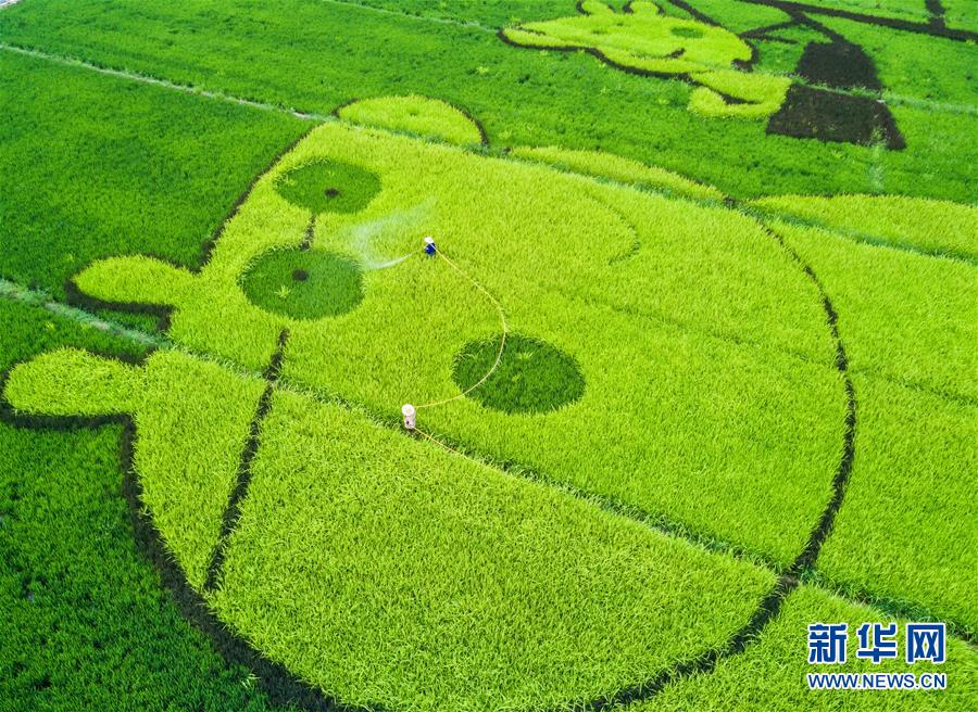 8月17日、空から見下ろした東洲街道紅旗村の300ムーの田んぼアート