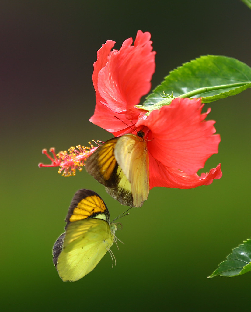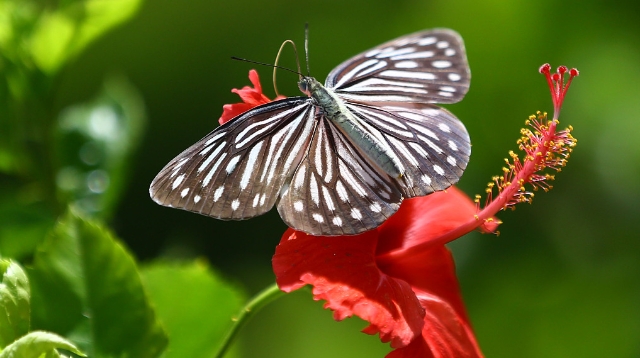 海南省三亜市 蝶とハイビスカスが夏の「蝶恋花」を上演
