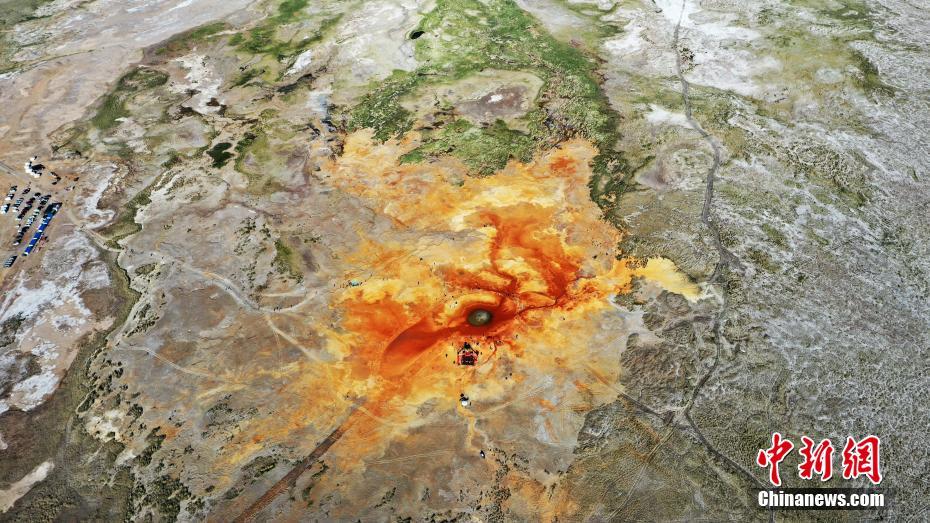 青海省茫崖市の艾肯泉が25日、空撮された。