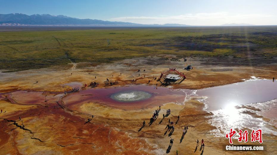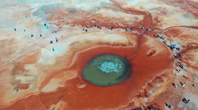 青海省茫崖市の艾肯泉が25日、空撮された。