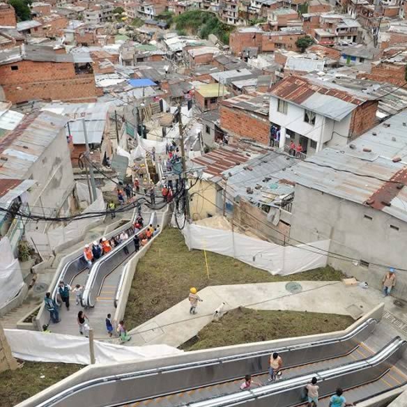 この貧民窟の地形は険しく、外出するには28階の高さまで登らなければいけない。この大型の屋外エスカレーターができてから、35分かかっていたのが6分で外出できるようになった。