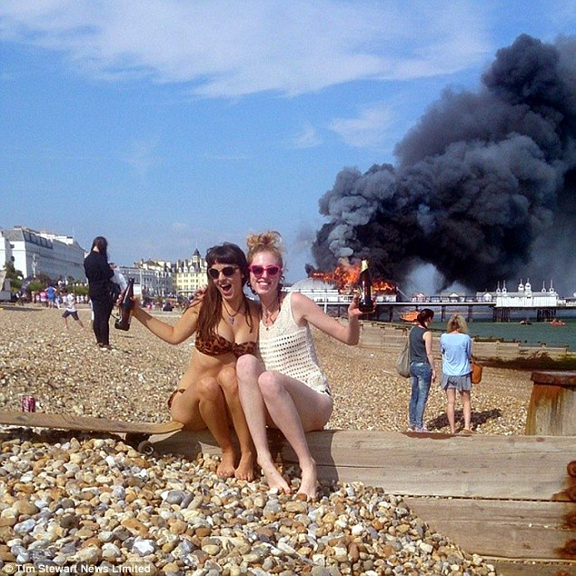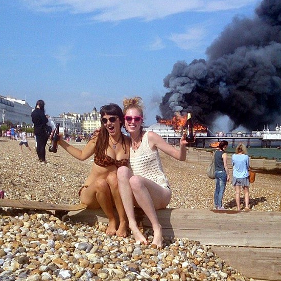 イギリスの「デイリー・メール」の8月4日の報道によると、144年の歴史を持つイーストボーンの桟橋で先週、火災が発生した。芸術を専攻する女性が火災現場をバックにビキニ姿で写真を撮り、インターネット上で公開したことが議論を引き起こしている。