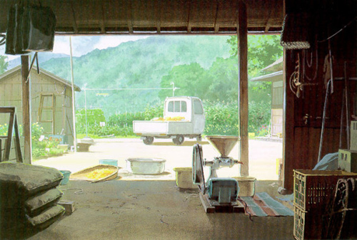 男鹿和雄氏は1952年生まれ、秋田県出身のアニメーション美術監督・挿絵画家である。田舎や森を描いた作品が多く、静かな田園の雰囲気を感じることができる。