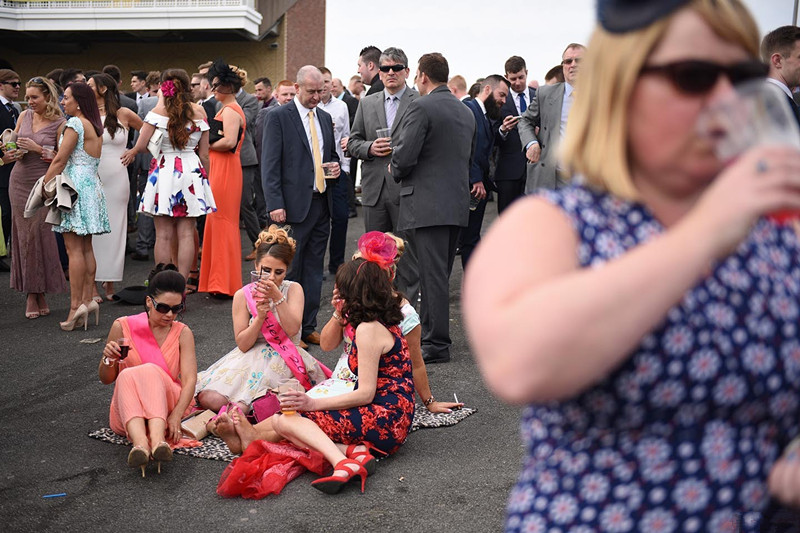 英「女性の日」 酒に酔った女性たち。 イギリス・リヴァプールにあるエイントリー競馬場で4月10日、障害競走・グランドナショナルが行なわれ、大会前日の「女性の日」には多くの女性が盛装して参加した…