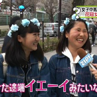 日本の情報番組『ZIP!』の調査によると、近ごろ日本の中高生の間で花冠が流行している。どのように流行したかは知られていないが、花冠女子は増えている。あるネットユーザーが明かしたところによると、日本のバラエティ番組で上海の花見スポットで中国人が花冠をつけて花見をしている様子が紹介され、司会者も購入したことにより流行し始めたという。