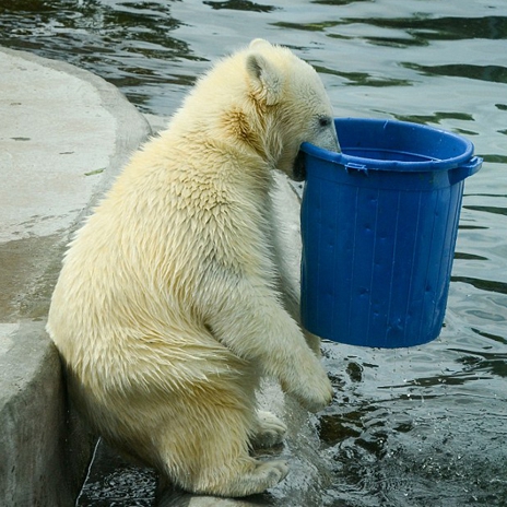ロシアの首都モスクワの動物園内で、のどが渇いたホッキョクグマがバケツの水を一気飲みし、かわいらしい様子をしていた。17日付英デイリー・メールが伝えた。