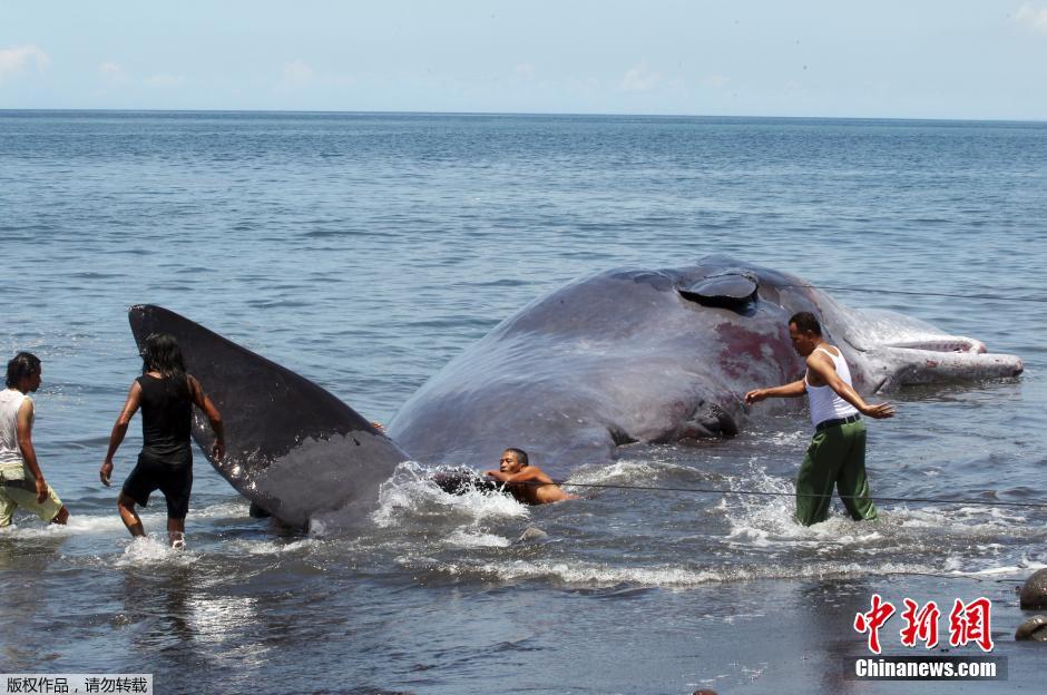 体長16.2メートルのマッコウクジラが3月14日、インドネシア・バリ島のクルンクン県のビーチに打ち上げられ、多くの地元住民が見物に訪れた…