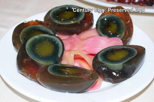 中国の「ピータン」。石灰やモミガラを混ぜたものに漬けたアヒルの卵。