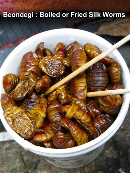 韓国の「ポンテギ」。蚕のさなぎを蒸したり炒めたりしたもの。