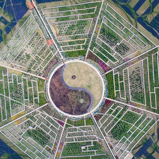 5月12日に撮影された貴州省仁懐市枇杷村にある八卦園。八卦園は敷地面積300ムー(約20ヘクタール)で、コーリャン、アブラナ、桃やスモモの木、カラーリーフ類の植物など81種類の植物が植えられている。同園は地元政府が建設を主導した農村観光一体化パークであり、地元の農村観光の発展を後押ししている。初夏にはクマツヅラが生い茂り、多くの行楽客が訪れる。