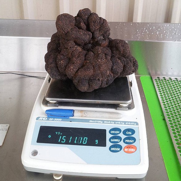 この巨大黒トリュフは重さ1.5キログラム、価値は約3000ドルになるという。