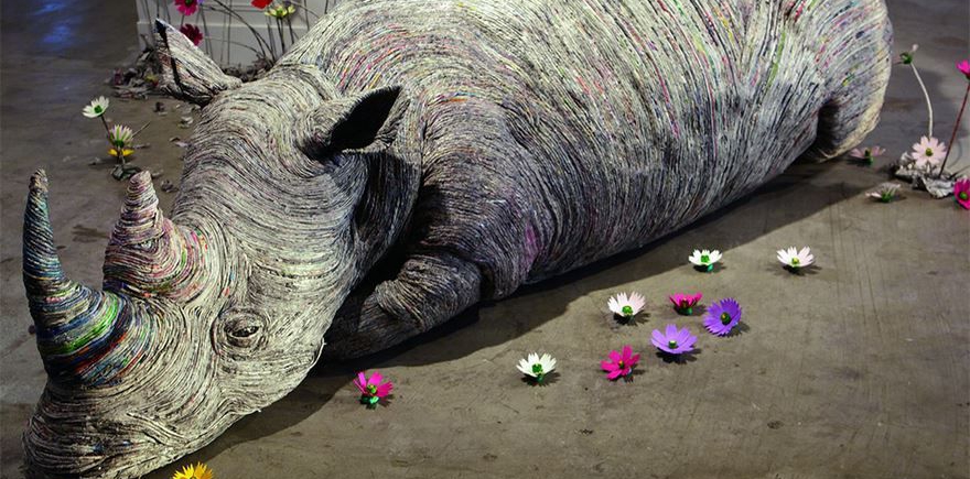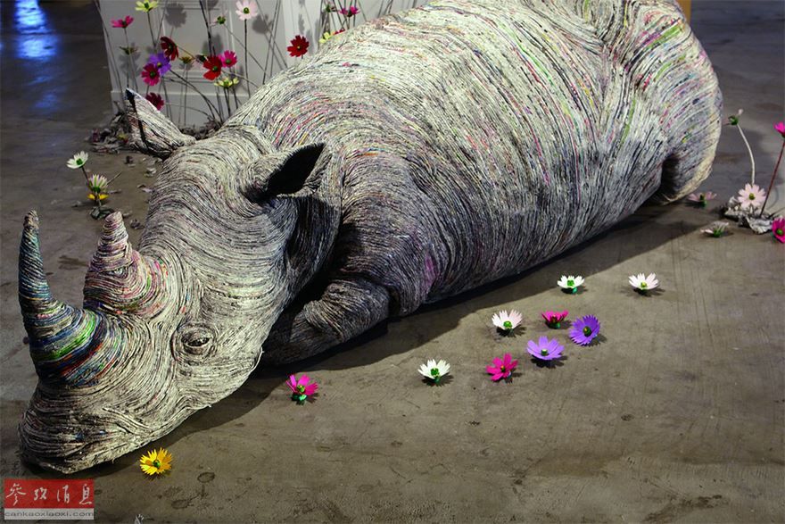 廃品が宝に 日本人アーティストが新聞紙で作るオブジェ
