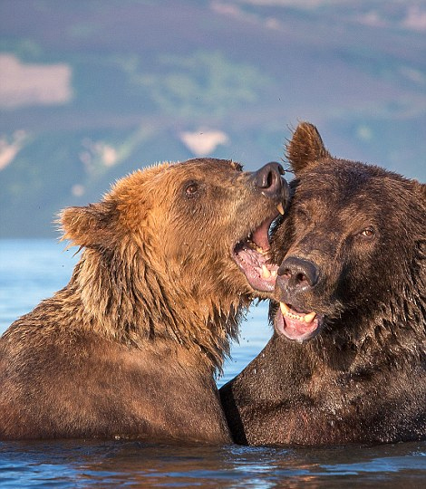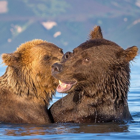 38歳アマチュアカメラマンのエゴール・ウラソフさんは、ロシアのカムチャツカ半島に行く途中で2頭のヒグマの可愛らしい姿を撮影した。2頭のヒグマは風景画のように美しい湖畔でじゃれ合い、抱き合う姿はワルツを踊っているようである。