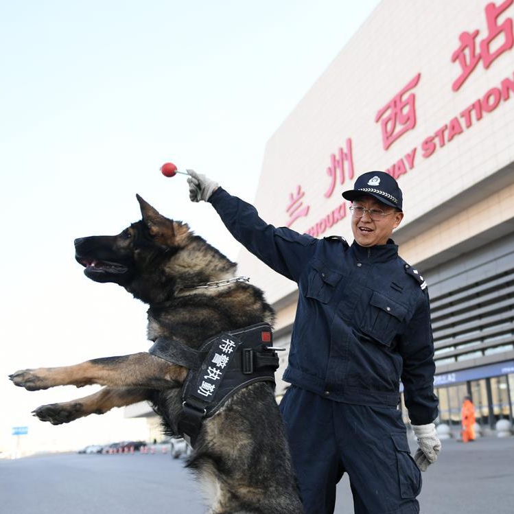 満3歳になったばかりの「璐璐」は、蘭州鉄道公安所蘭州西駅派出所の雌のジャーマン・シェパード・ドッグだ。旧正月や夏休み中の旅客輸送、大型イベントの警備、刑事捜査に何度も参加してきた「璐璐」は、蘭州鉄道公安所のスター警察犬だ。