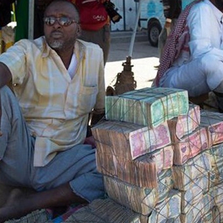 首都のハルゲイサでは紙幣が束で売られ、政府もこのような行為を黙認している。また、これは唯一の貨幣市場にもなっている。彼らは紙幣を数えるのに計数機を使わない。紙幣が多すぎ、計数機が壊れた場合に困るためである。彼らは棒で大体の枚数を数える。