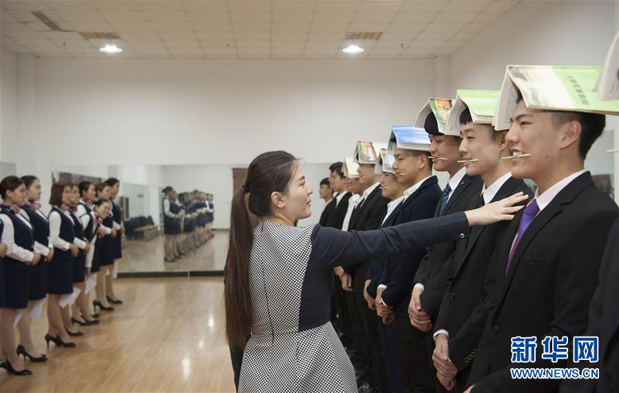 5月4日、石家荘工程職業学院航空工程・客室乗務員科の1年生は厳しい姿勢訓練を受けた。学生らは頭に本を載せ、膝の間に紙をはさみ、口に箸をくわえて8本の歯を見せて笑顔を作り、座る・立つ・歩く・しゃがむの動作を10分以上続け、2分間の休憩後に再び訓練を再開した。それだけでなく、彼らは基礎文化、礼儀、民間航空法などの授業を受け、「青空の夢」の基礎を固めなければいけない。ゼネラル・アビエーション人材を育成する河北省唯一の大学である石家荘工程職業学院は2012年に航空工程科を設立し、パイロット、客室乗務員、地上整備員、無人機操縦士などの人材を育成している。