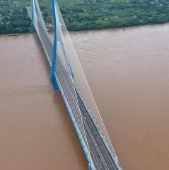7月23日、ドローンで撮影した南渓仙源長江大橋と宜賓市南渓区の市街地(左)。 四川省宜賓市南渓区にある南渓仙源長江大橋は2015年に着工し、2019年1月30日に開通した。南渓仙源長江大橋の開通により、地元住民は渡し船で川を渡る必要がなくなり、経済と社会の発展も促した。