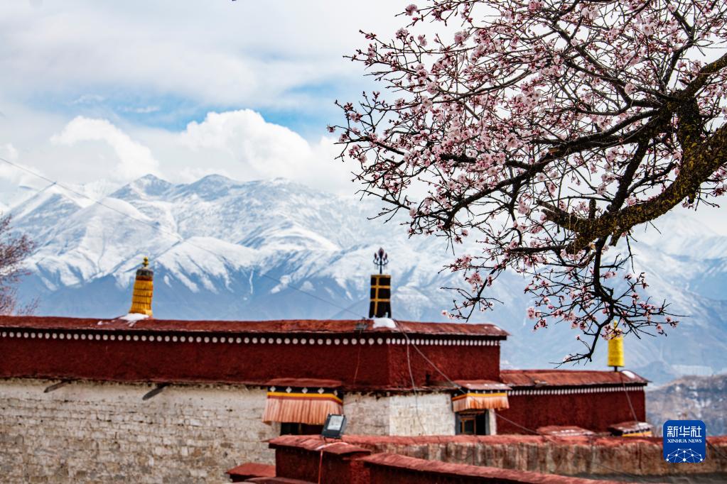 ラサ 山寺で桃の花が満開