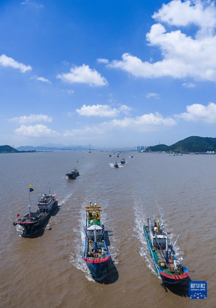 8月6日,渔船从舟山普陀沈家门渔港驶出,前往东海渔场。