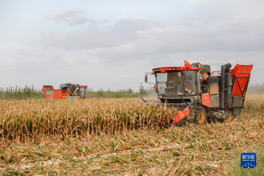 甘粛省張掖市 国家級トウモロコシ品種開発基地が収穫シーズンに