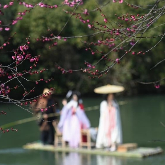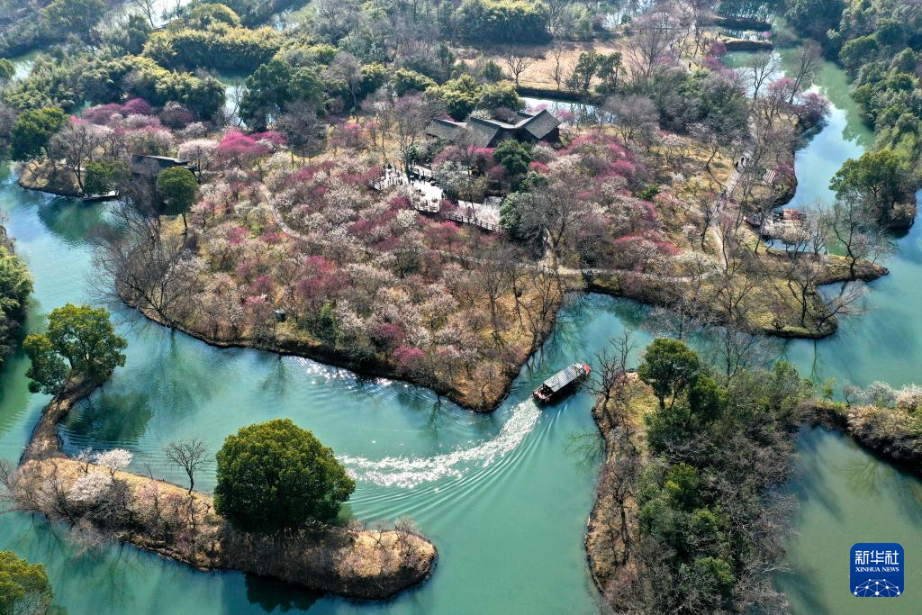 春らしさが増し、杭州市の西渓国家湿地公園では梅の花が美しく咲いている。西渓湿地は梅の最高の見頃を迎えた。