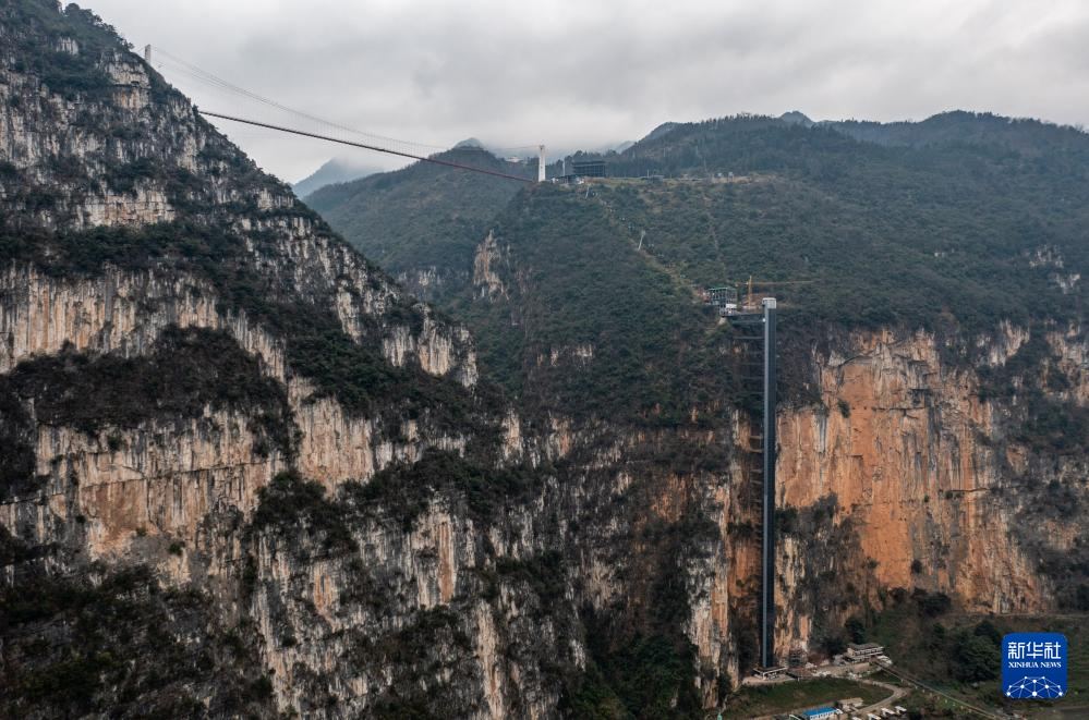 地元の児童は景勝地の観光カーに6~7分乗った後、観光エレベーターで268メートルまで上がり、さらにケーブルカーに乗り換え約200メートルまで上がり、徒歩で学校に向かい、30分ほどで着く。