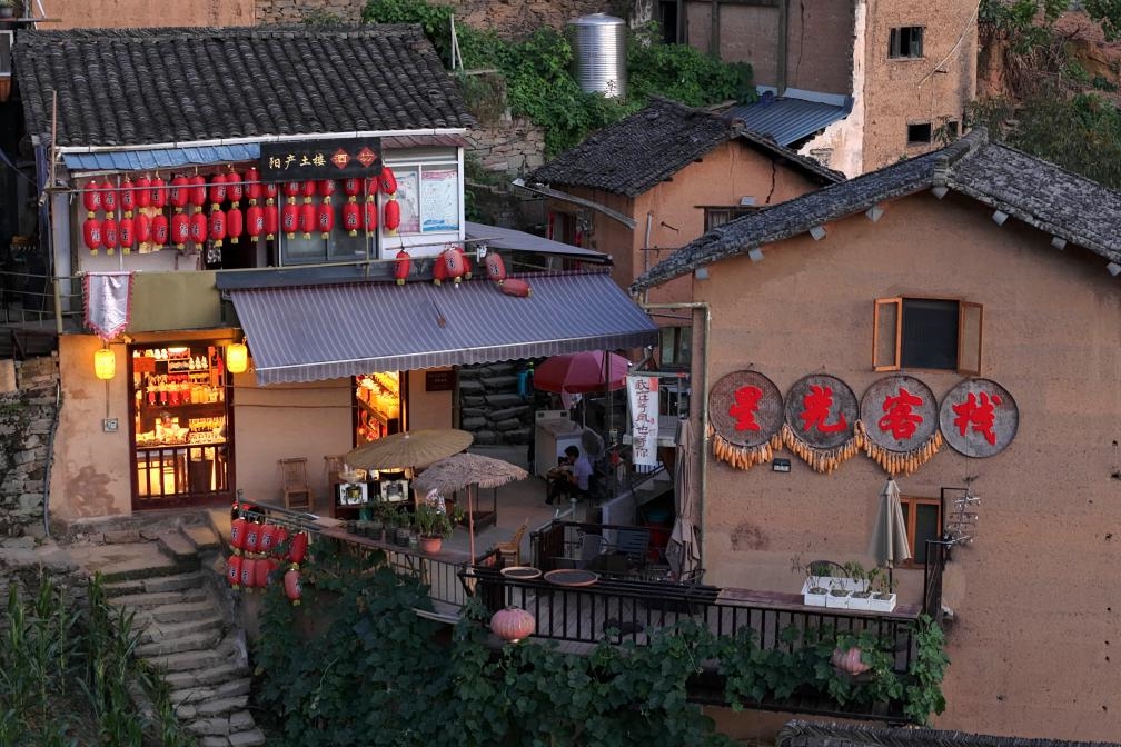 18日、陽産村にある民宿。(ドローンから、黄山=新華社記者/黄博涵)