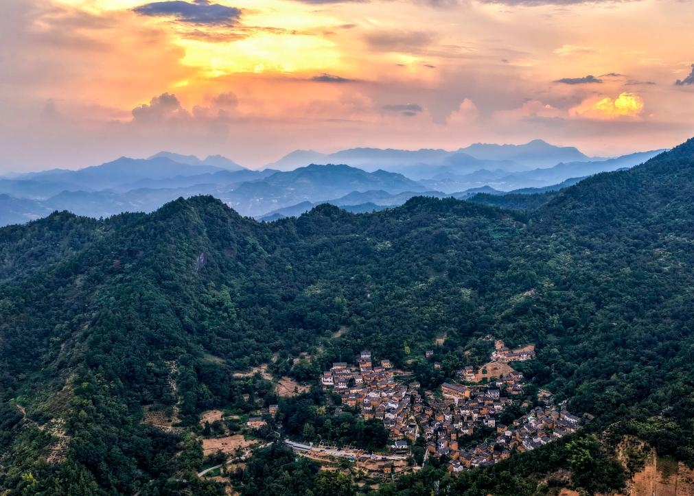 17日、空から見た陽産村。(ドローンから、黄山=新華社記者/黄博涵)