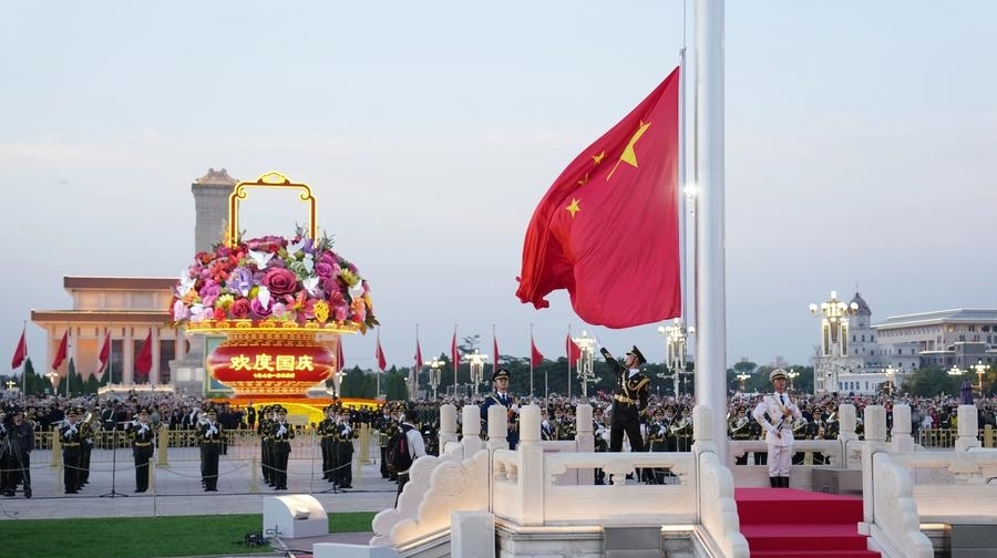 【新華社北京10月1日】中国の国慶節に当たる1日早朝、北京の天安門広場で中華人民共和国成立76周年を祝う国旗掲揚式が行われた。
